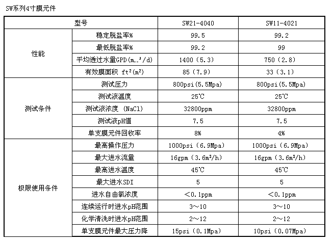 SW系列 4寸膜元件