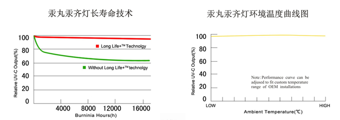 ? 16000小時的超長壽命,即使在壽終仍能保持85%的紫外線輸出。